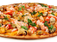 een heerlijk ambachtelijke pizza met een rijk gevulde topping van diverse soorten zeevruchten