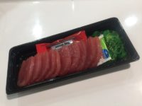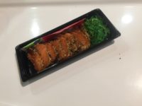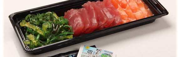 Tonijn Zalm, rauw getrancheerde zalm en tonijn met Japanse wakame salade met kikkoman sojasaus en wasabi.