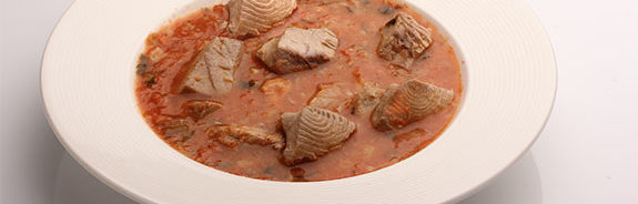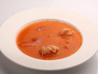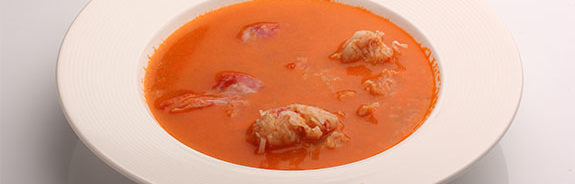 Een soep met een lichte bouillon die wordt afgekookt met pomodori tomaten. Daarna voegen wij een variatie van kabeljauw, tonijn, zalm en zwaardvis toe en ook deze soep word opgefrist met verse soepgroente.