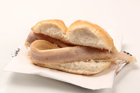 Een zachte Volendammer vloerkadet royaal belegd met gerookte paling.