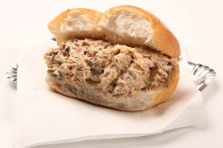 Een zachte Volendammer vloerkadet royaal belegd met Spaanse tonijnsalade.
