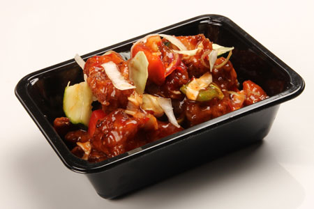 Stukjes kabeljauw gebakken met roerbakgroente en Portugese piripiri saus.