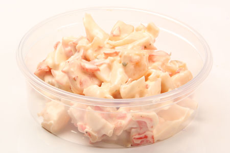 Crab en garnalen met heerlijke vruchten in zachte marinade.